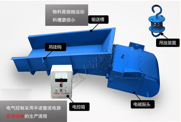 3、電磁振動給料機(jī)物料是微拋運(yùn)動,料槽磨損小。