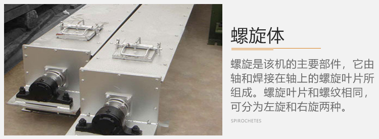 (1)螺旋:螺旋是該機的主要部件,它由軸和焊接在軸上的螺旋葉片所組成。螺旋葉片和螺紋相同,可分為左旋和右旋兩種。