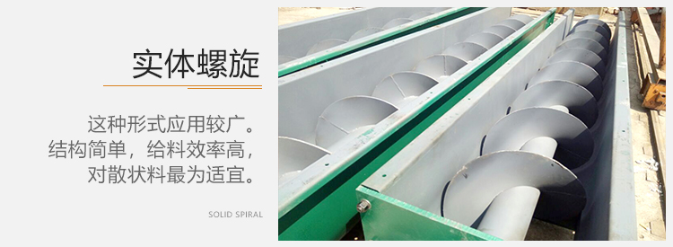 1)實體螺旋,這種形式應用較廣。它結構簡單,給料效率高,對散狀料為適宜。