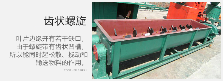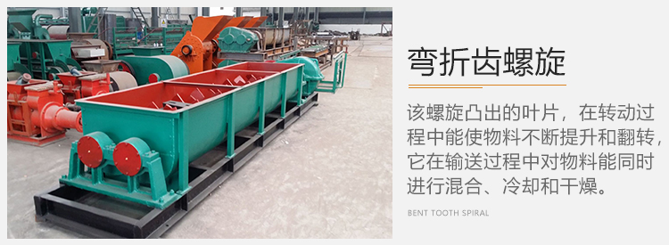 4)彎折齒螺旋,該螺旋凸出的葉片,在轉動過程中能使物料不斷提升和翻轉,它在輸送過程中對物料能同時進行混合、冷卻和干燥。